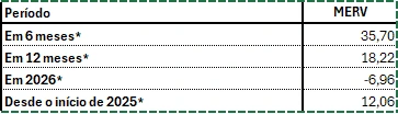 Confira a variação do índice S&P Merval (MERV) no período (em %)