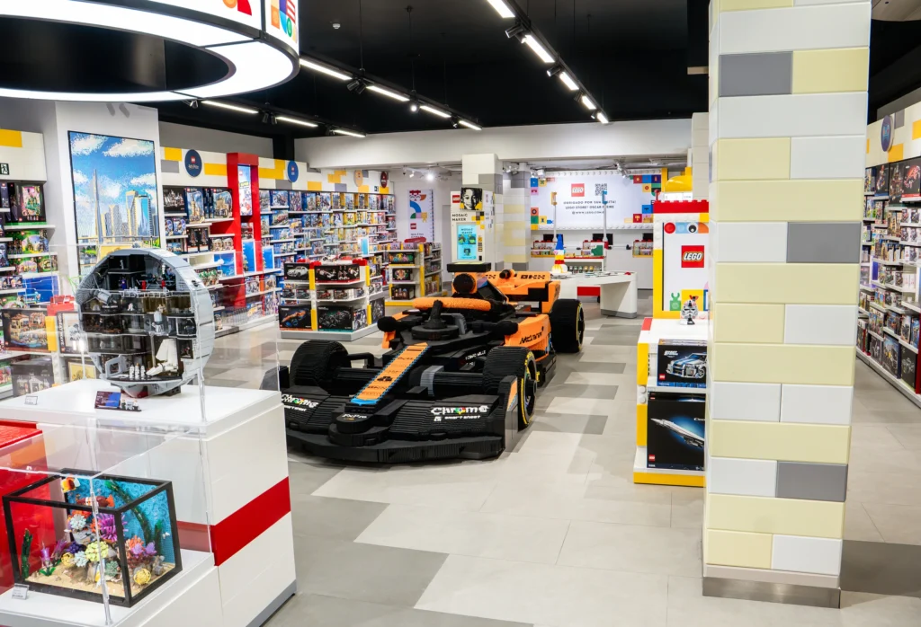 O espaço segue os padrões internacionais da marca, com layout atualizado e portfólio ampliado de produtos exclusivos, além de abrigar temporariamente uma réplica em tamanho real do carro McLaren F1 2024, construída com cerca de 400 mil peças de LEGO.