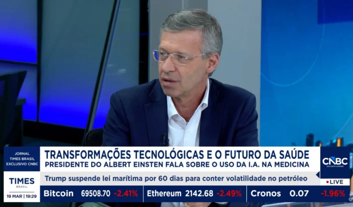 A inteligência artificial se consolida como um dos principais motores de transformação da saúde, com impacto direto na gestão hospitalar, no atendimento ao paciente e na ampliação do acesso, afirmou o presidente do Hospital Israelita Albert Einstein, Sidney Klajner, em entrevista à Times Brasil – Licenciado Exclusivo CNBC, nesta quinta-feira (19).
