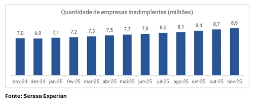 O início de balanço financeiro para as dívidas do Brasil iniciou o ano de 2026 com uma marca histórica, porém, negativa. A inadimplência entre empresas brasileiras atingiu a maior marca registrada na história, em novembro de 2025, ao menos 8,9 milhões de CNPJs estão negativados.