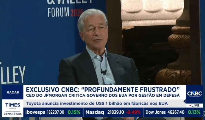 Em entrevista à CNBC, o CEO do JPMorgan Chase, Jamie Dimon, fez duras críticas às políticas do governo dos Estados Unidos, especialmente no que diz respeito aos gastos militares e à burocracia estatal.