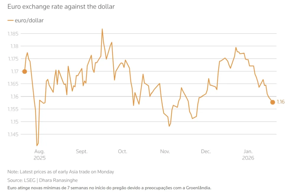 Os mercados globais operam sob forte volatilidade depois que o presidente Donald Trump prometeu impor tarifas a oito países europeus para pressionar um acordo que permita aos Estados Unidos comprar a Groenlândia, movimento que reacendeu temores de uma nova guerra comercial transatlântica.
